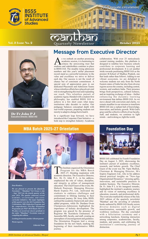 The Institute publishes a quarterly newsletter by the name ‘Manthan’, which provides the platform for the students to express their managerial thought processes to the outside world. The creativity and innovation of the students are penned down in each volume of the newsletter. It also acts as the mirror of all the academic activities, and academic progress that is taking place within the institute Comtemporary management-related concepts and issues are also covered in each volume to consolidate the thought process across the corporate segments.